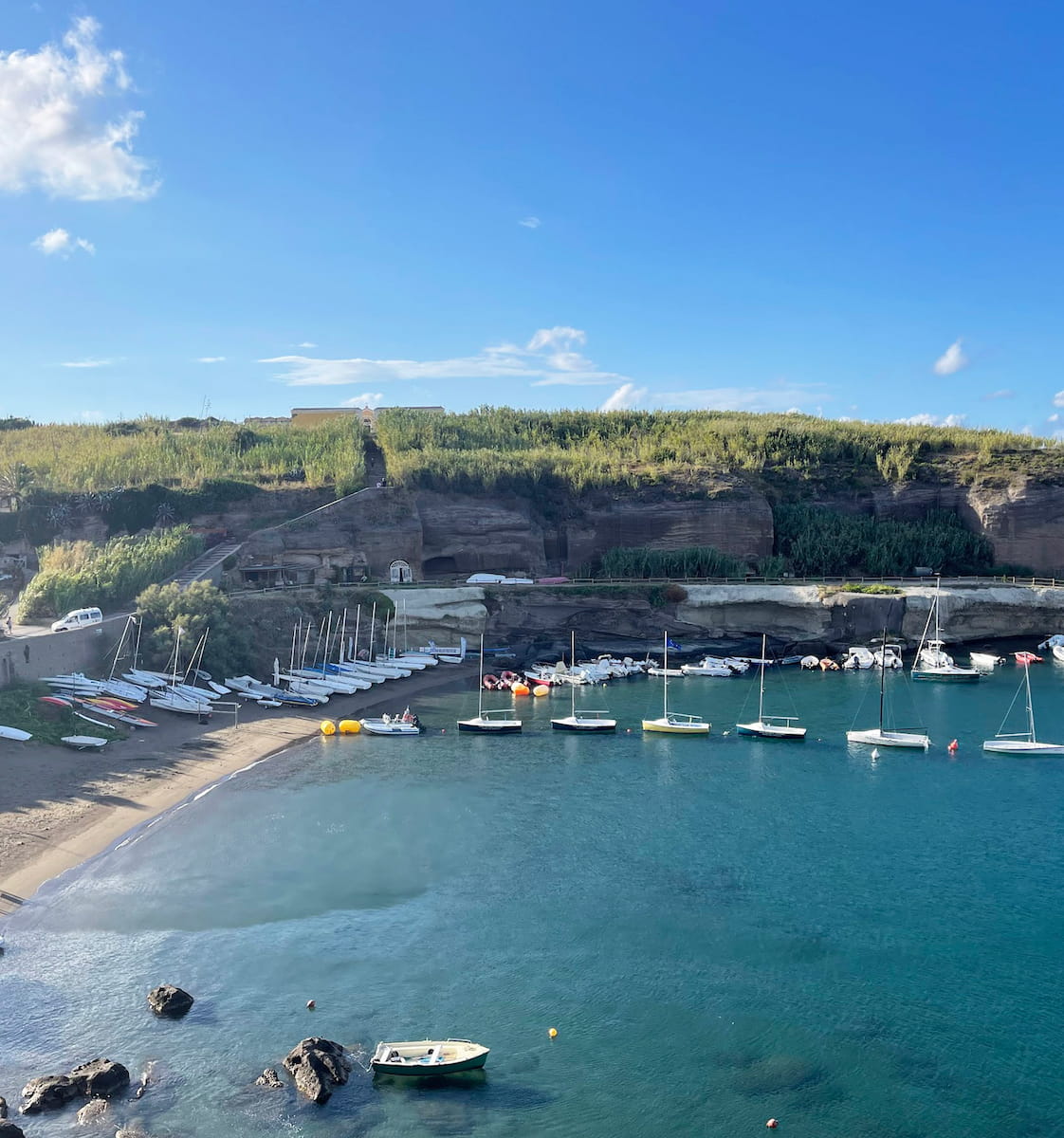Standing at the northern tip of Ventotene, this bay feels wild, with the breeze and seabirds wheeling overheadāa reminder that youāre on a tiny island shaped by nature. I found myself watching migratory birds from a rocky perch, far from the main areasāa place for those seeking tranquil time on Ventotene. This pebble bay is best visited in late spring or early fall, when the sea is warm and the winds are fresh.