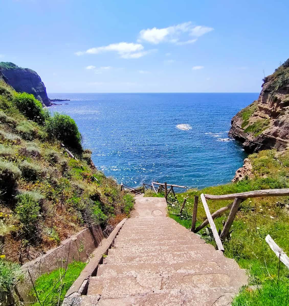 Punta dellāArco is a small, sheltered inlet framed by rugged rocksāa favorite spot for divers and those who love the wild side of Ventotene. I climbed down the steps and found a quiet patch for a morning swim, with only the sound of the sea and distant views toward the mainland. This shoreline is about 50 meters long, best in May, June, and Septemberāa special place for those who love to explore the islandās hidden spots.