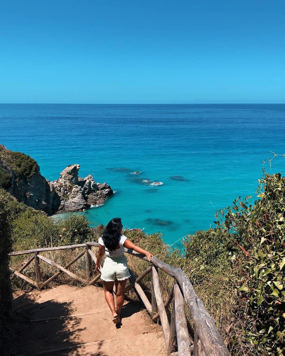 Arrive before 9 a.m. for the best of both worlds—easy parking, quiet sands, and the golden light of morning. Climb to the viewpoint above for panoramic photos, swim with a mask in the cool, crystal-clear coves, and don’t miss a granita at Bar del Capo, a local favorite for those visiting Tropea and Pizzo.