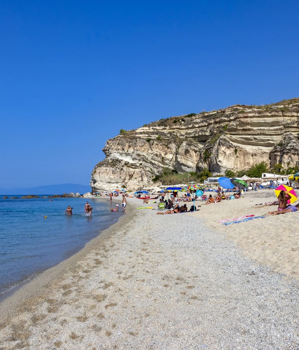 Walk up to the Capo Cozzo viewpoint for a breathtaking panorama, join the sunrise yoga sessions on Spiaggia Piccola, or savor a Spritz at Bar Il Baretto, a local favorite for its homemade limoncello. Facilities here include showers and umbrellas—arrive before noon at Piazza Marconi for the closest parking, as the beach can get crowded with both locals and visitors staying for the holiday in Calabria.