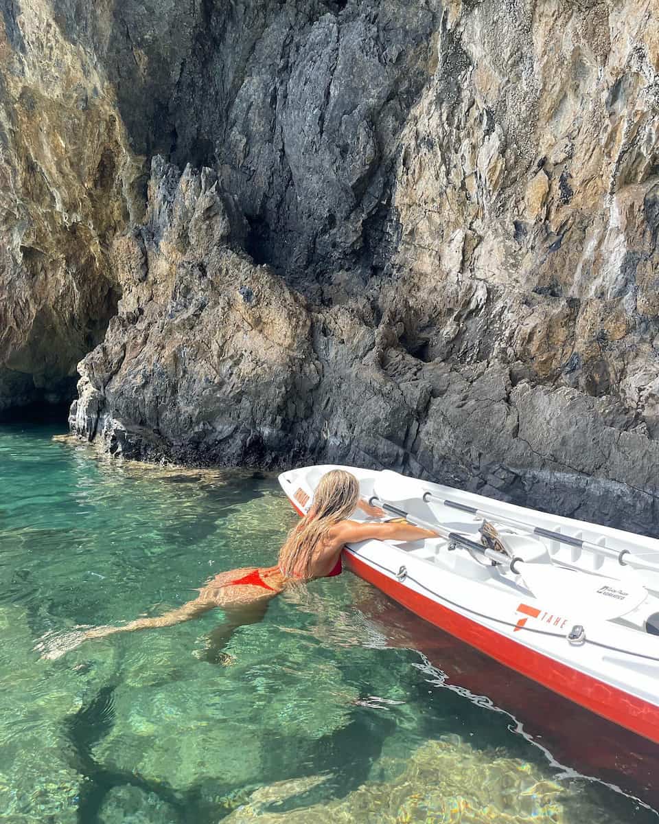Promenade Beach, a narrow stretch behind the marina, is a favorite for morning walks and coffee at Zucchero e Sale. The tamarisk trees offer welcome shade, the water is calm for a dip, and the whole area is alive with locals out for a stroll, especially in spring and autumn when things are quieter. Stroll down Via del Molo, stop at the market for fruit and picnic supplies, and explore the Grotte dell’Ammiraglio just south—best at golden hour, when the cliffs glow red against the blue of the Tyrrhenian.